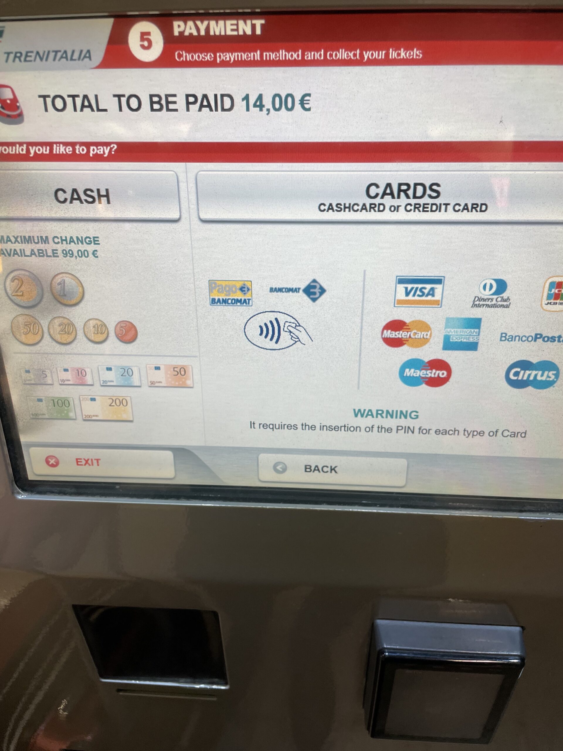 フィウミチーノ空港券売機
