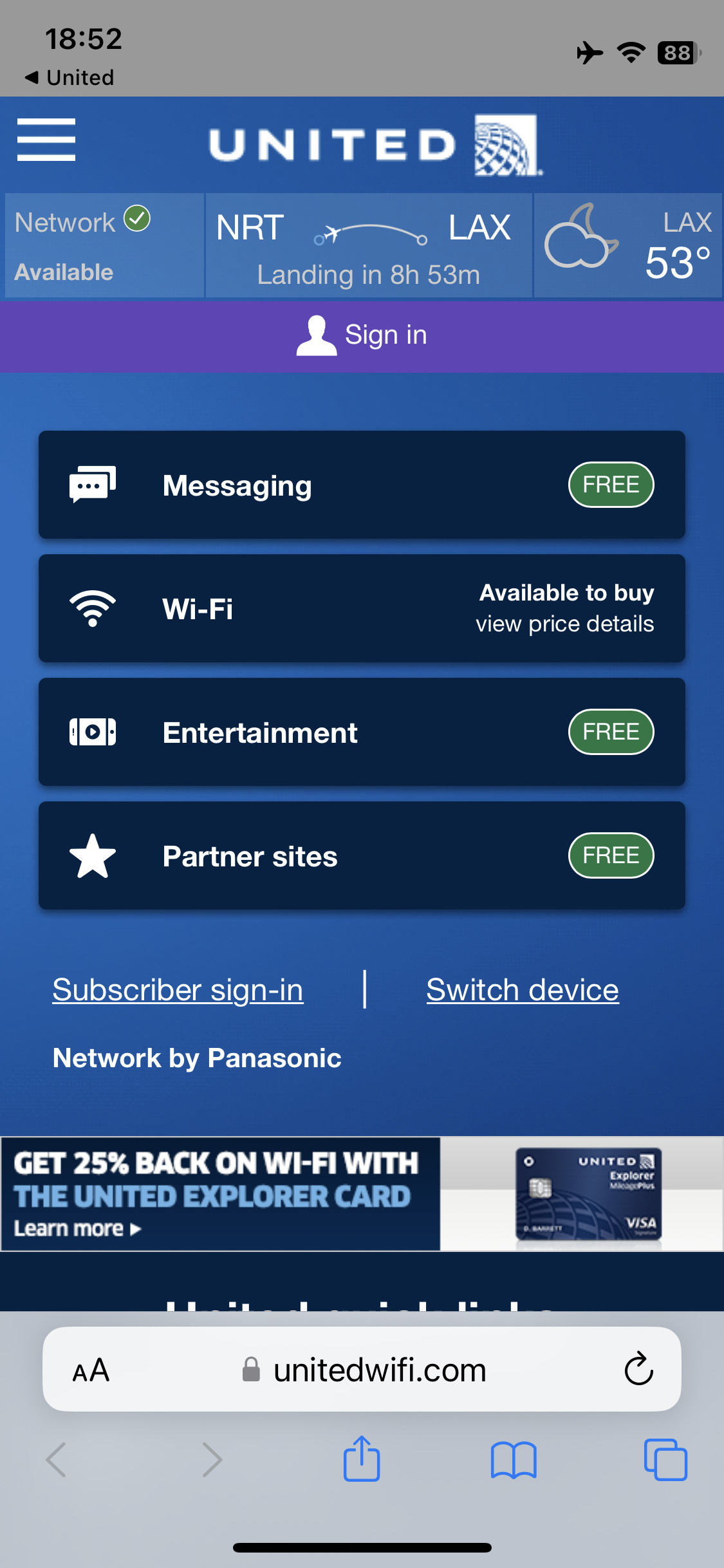 今回ご紹介するユナイテッド航空の機内wi-fiは一部制限があるものです。お金を払って通常のWi-fiを使用するやり方ではないのでご了承ください。